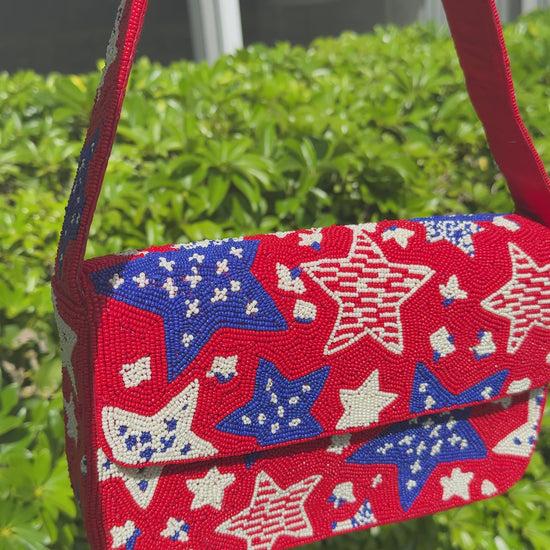 American Flag Start Beaded Shoulder Bag – Statement Summer Bag