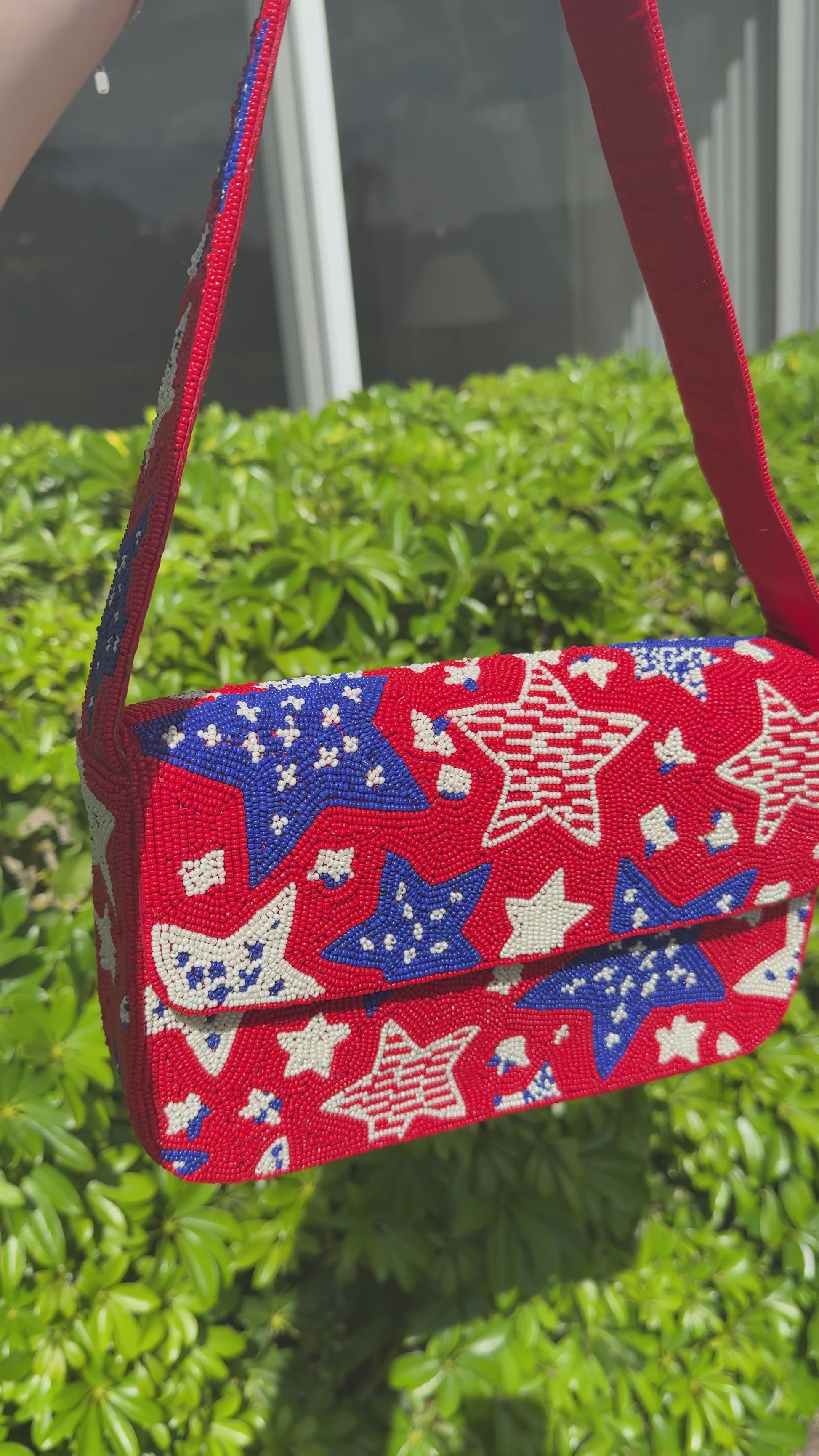 Make a bold statement with our American flag beaded shoulder bag, a playful yet polished accessory designed to turn heads. Featuring detailed american flag star inspired beadwork and a structured shoulder bag silhouette, this piece brings personality, texture, and charm to any outfit.